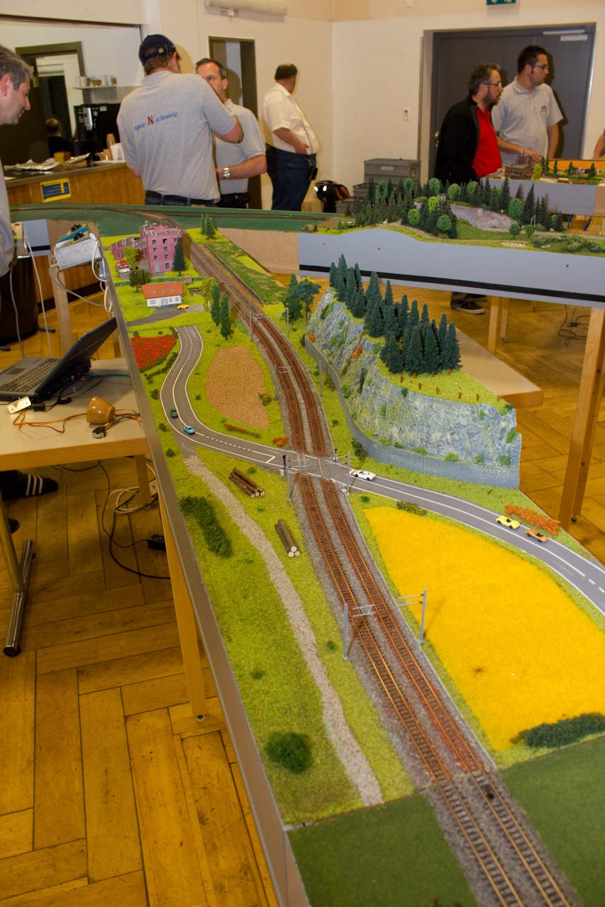 Am Wochenende vom 29.4 – 1.5.11 hatten wir ein mal mehr ein internes Test Treffen der Modulgruppe von Spur-N-Schweiz…Bei diesen Treffen geht es Hauptsächlich darum neue Module oder veränderungen an Modulen auf Herz und Nieren zu prüfen. Aber auch um einfach mal wieder eine “überdosis” Bähneln zu holen.