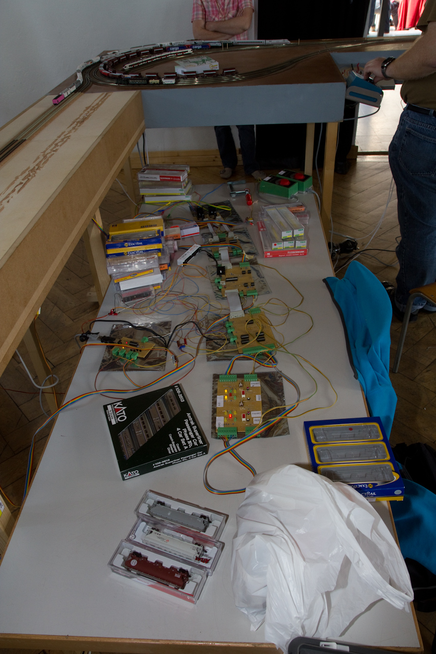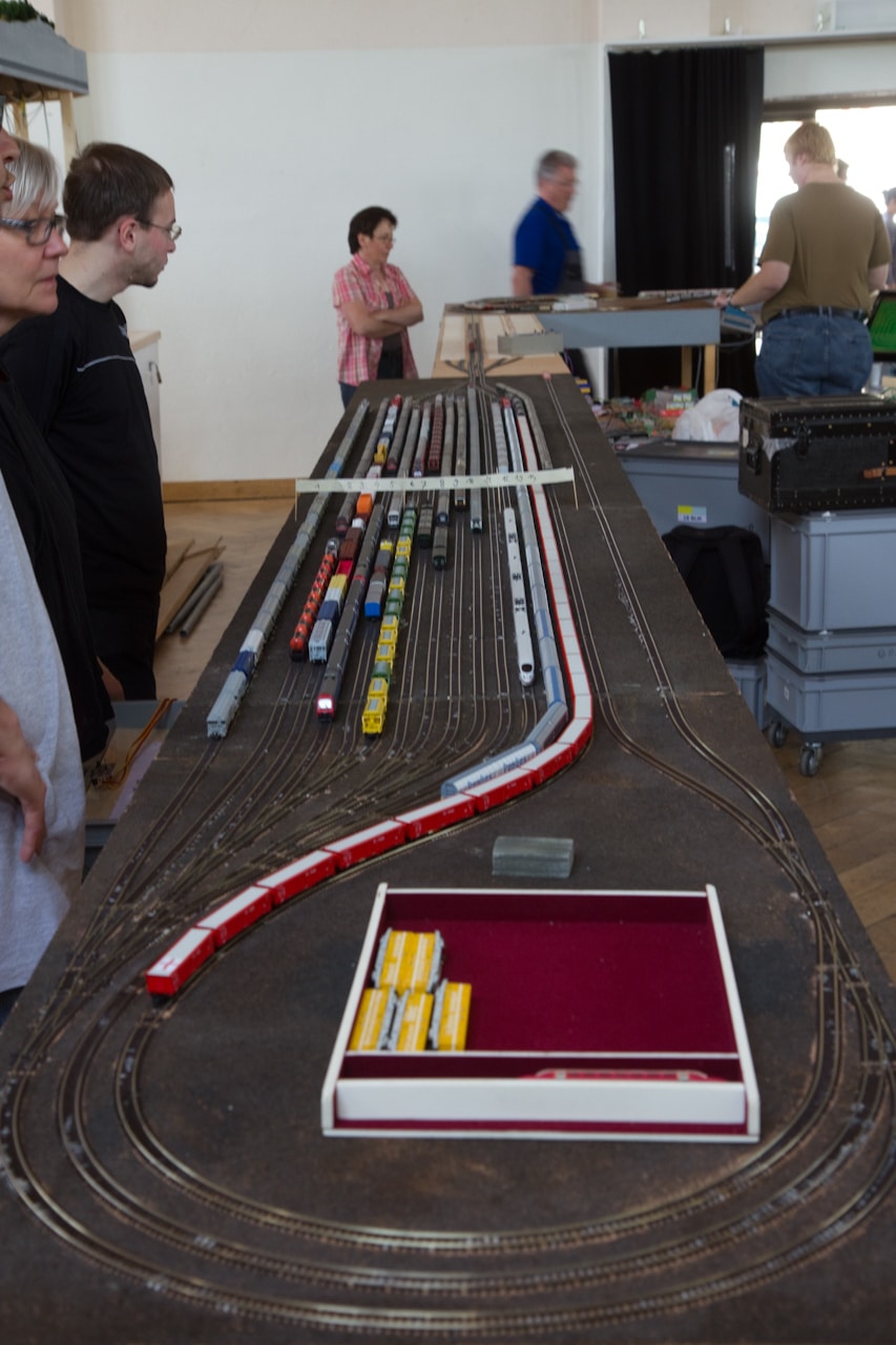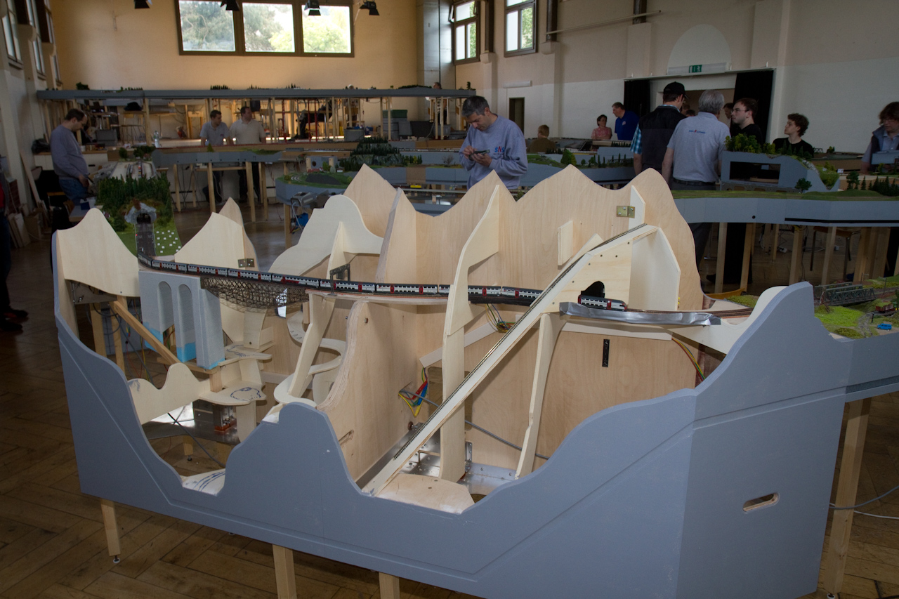 Der Vorteil der internen Treffen gegenüber Ausstellungen liegt jedoch auch in der Anlagenplannung, so müssen wir keine Rücksicht auf Besucherströme nehmen und können kompakter bauen. Auch fährt an einem solchen Treffen auch eher mal noch das eine oder andere Messingmodell, welches an einer Ausstellung gefahr läuft eigene Beine zu bekommen.